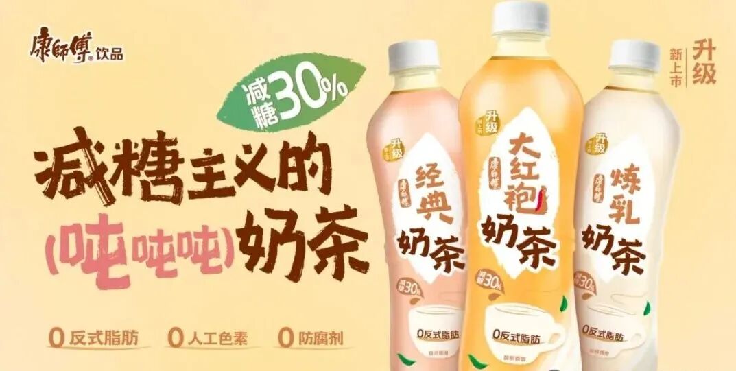 2、康师傅新推“减糖”奶茶
