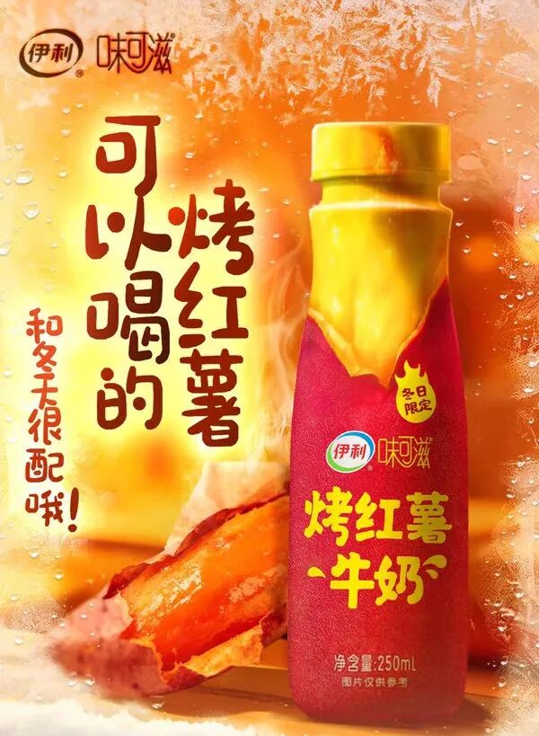 近日,伊利味可滋上线了一款限定新品:烤红薯牛奶。根据官方资料,新品定位为“可以喝的烤红薯”,甄选100%生牛乳奶源,采用“烤”出来的风味,口感焦香顺滑,每包添加烤红薯粉2000mg。真材实料,满口红薯香。