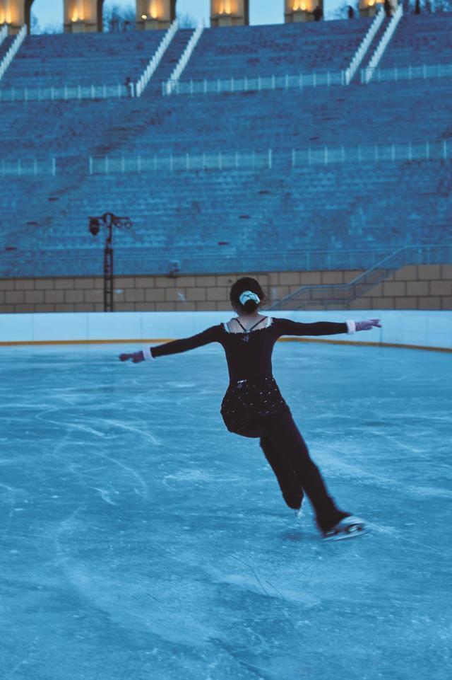 滑冰爱好者在冰面上翩翩起舞。